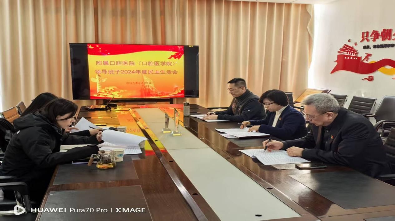 按照学校党委统一部署,2月25日上午,沈阳医学院附属口腔医院(口腔医学院)党委领导班子召开2024年度民主生活会。学校党委第三督导组组长吴静怡、副组长庞春阳到会指导。附属口腔医院(口腔医学院)领导班子成员出席会议,会议由学院党委书记赵宇丹主持。
