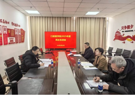按照学校党委统一部署,2月26日上午,口腔医学院召开领导班子2025年度民主生活会。督导组副组长张佳音到会指导。口腔医学院领导班子成员出席会议,会议由学院党委书记赵宇丹主持。