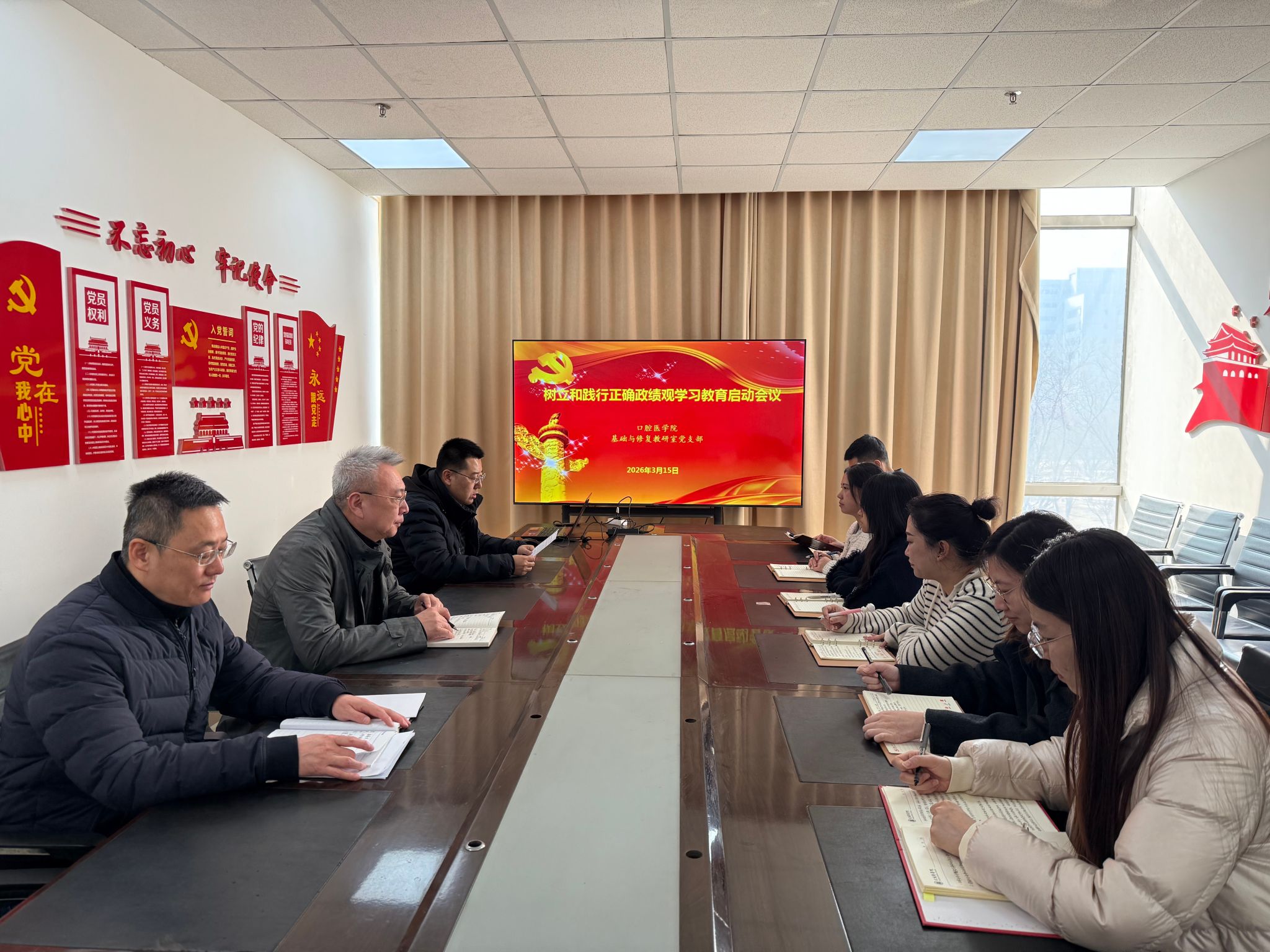 随后,正畸与牙体牙髓教研室党支部、基础与修复教研室党支部、学生党支部分别召开党员大会,部署和启动树立和践行正确政绩观学习教育。各支部组织学习了中共中央办公厅印发的《关于在全党开展树立和践行正确政绩观学习教育的通知》和学院学习教育实施方案,并结合实际就支部开展学习教育提出了具体要求。