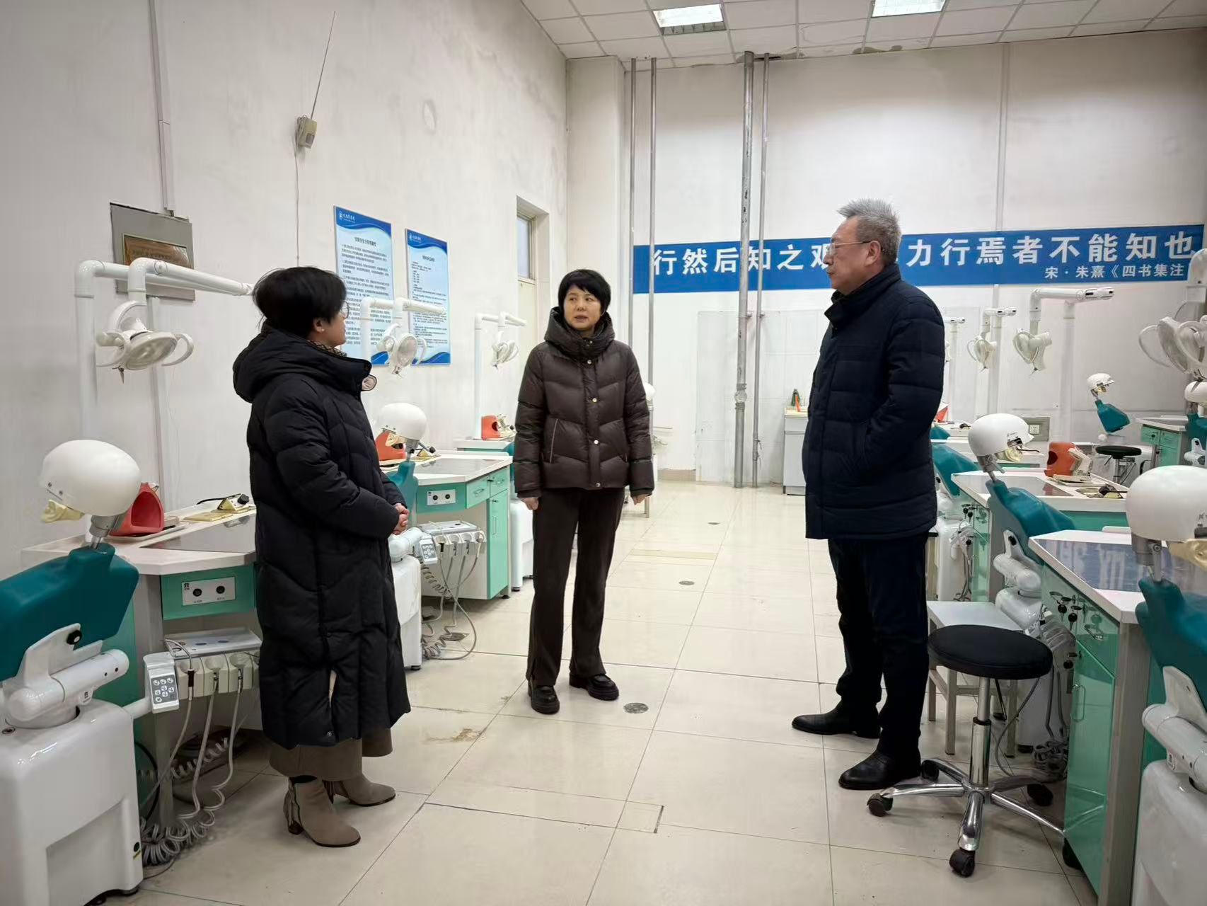 随后,张桂荣副校长来到口腔教学实验室,重点检查实验室设备运行和安全管理制度落实情况。再次强调实验室安全的重要性,要筑牢安全防线,强化安全管理意识,严格遵循操作规程,加强实验室日常管理,确保教学环境安全稳定,共同书写学院发展新篇章。