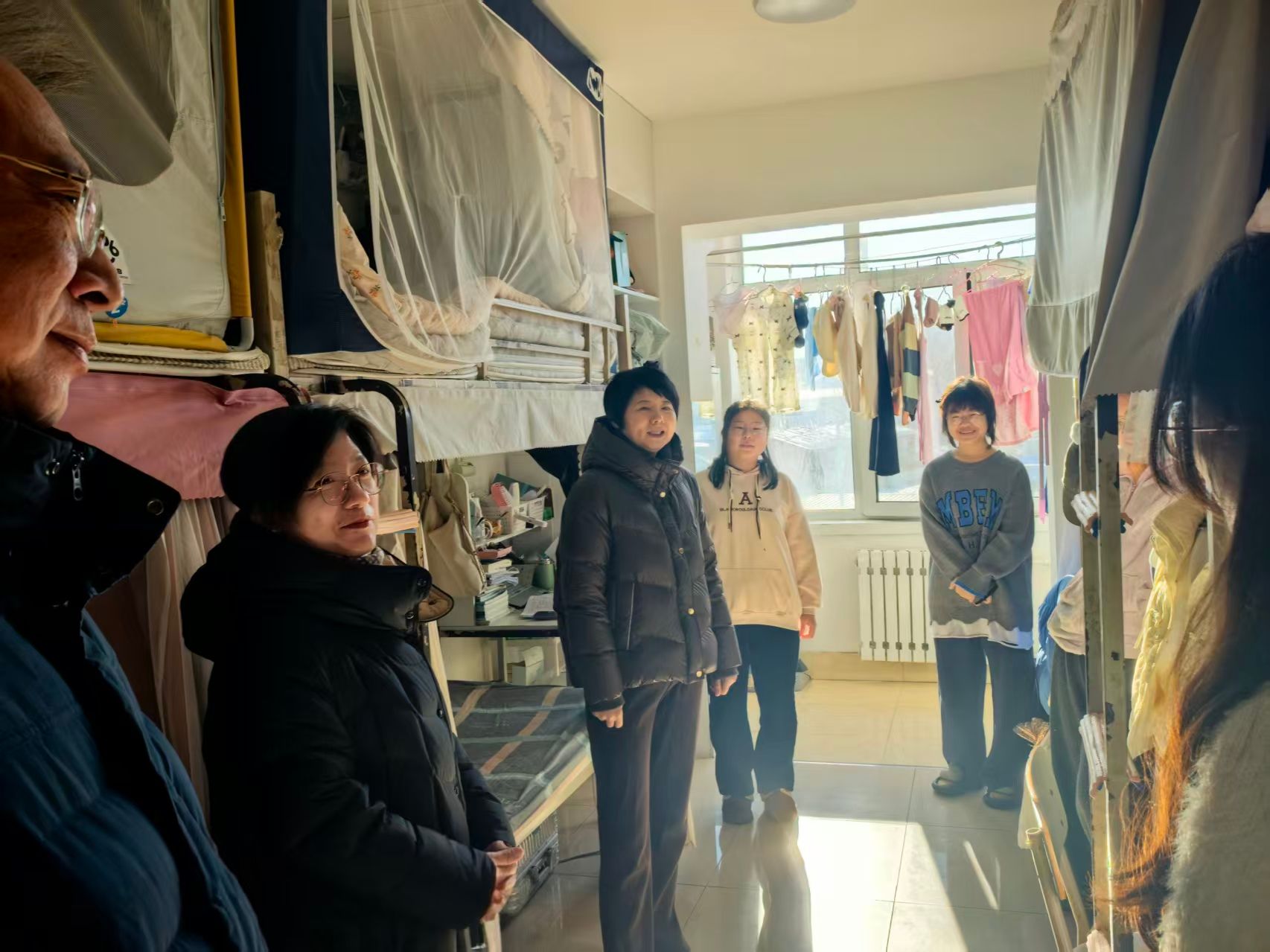 张桂荣副校长首先来到2025级口腔医学院学生寝室,与同学们亲切交流,了解她们期末复习备考和元旦假期出行安排情况,叮嘱大家注意冬季用电和外出安全,鼓励同学们在后续学习生活中互帮互助、共同进步。